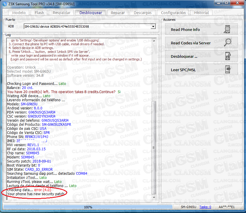 Hi i was trying to unlock a g965u bit 9 and the process finished saying (card error) it took my credits and didnt perform the unlock. Buenas tardes amigos estuve batallando con este modelo ya que no cuento con chimera y no encontraba nada para z3x con este modelo así que les. Samsung j701f/ds new paatch u3 unlock done. Aug 08, 2019 · unlock g965u sprint bit 3 con z3x. You have 18 credit(s) left.